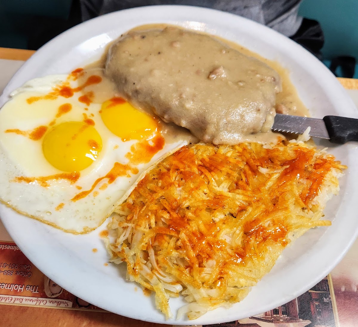The menu offers a broad range of options that cater to various tastes and appetites. Pancake enthusiasts will find plenty to explore, from classic stacks to more creative options like chili cheese on cornbread pancakes. If pancakes aren't enough, protein-rich plates like New York strip steak with eggs or turkey sausage with eggs provide substantial choices. The breakfast sandwiches and omelettes are also popular choices, often praised for their balanced portions and approachable flavors.
